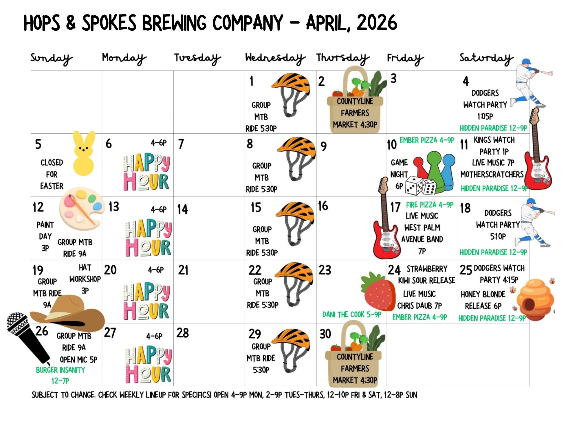 Copyright © 2026 Hops & Spokes Brewing Company - All Rights Reserved.